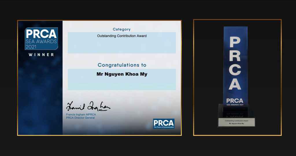 Ngày 05 tháng 04 năm 2021, Mạng lưới Quan hệ Công chúng Việt Nam (VNPR) vừa vinh dự được Hiệp hội Quan hệ Công chúng và Truyền thông Thế giới – chi nhánh Đông Nam Á (PRCA Đông Nam Á)1 trao tặng “Giải thưởng Đóng góp Nổi bật”2 dành cho những đóng góp tích cực