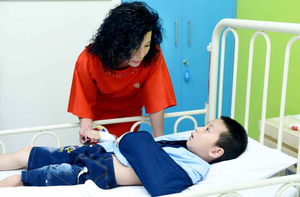 Bà Nguyễn Thị Lệ Thu thăm hỏi bệnh nhi của Quỹ NBTT được điều trị tại bệnh viện FV